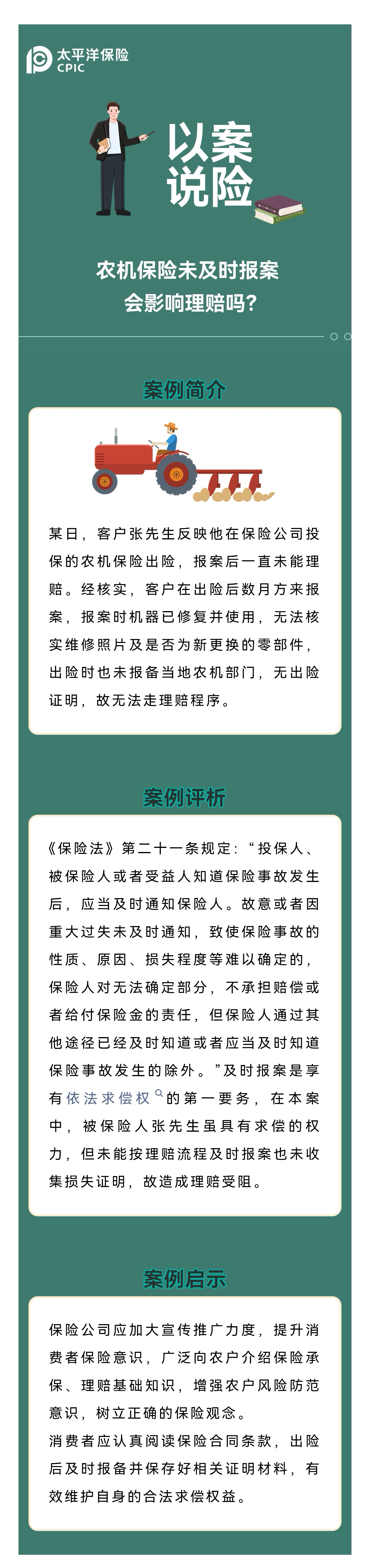 【以案說險(xiǎn)】農(nóng)機(jī)保險(xiǎn)未及時(shí)報(bào)案,會(huì)影響理賠嗎?